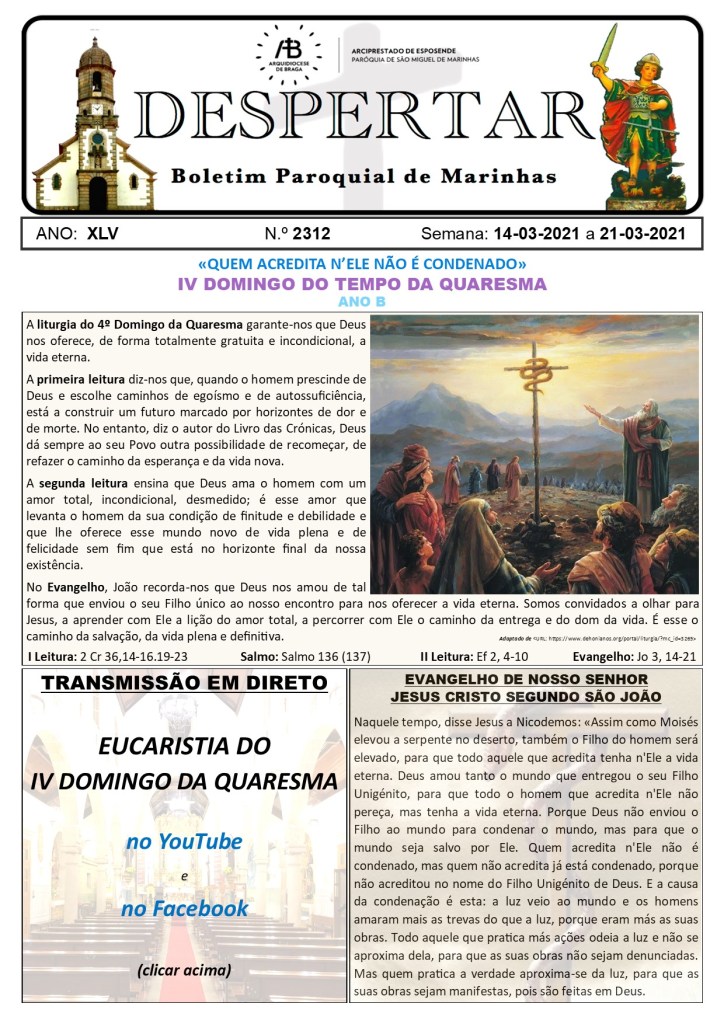 Boletim Despertar n.º 2312 de 14.03.2020 a 21.03.2020