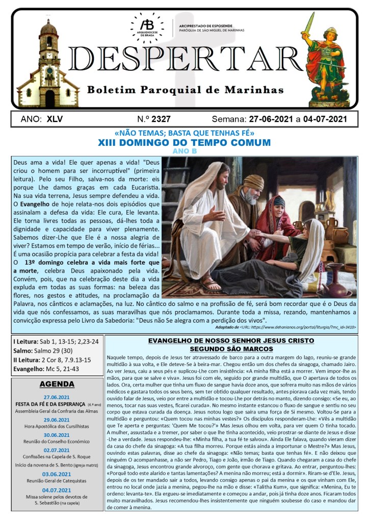 Boletim Despertar n.º 2327 de 27.06.2021 a 04.07.2021