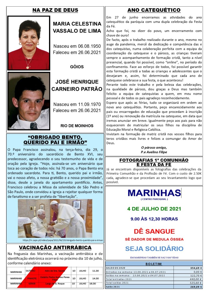 Boletim Despertar n.º 2328 de 04.07.2021 a 11.07.2021