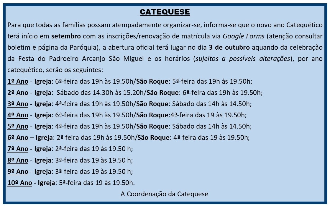 Matrículas e Renovação de Matrículas – Ano Catequético 2021-2022