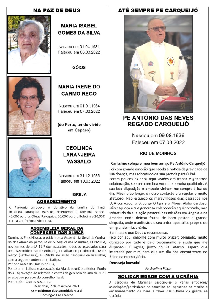 ≈ Comentários Desativados em Boletim Despertar n.º 2364 de 13.03.2022 a 20.03.2022