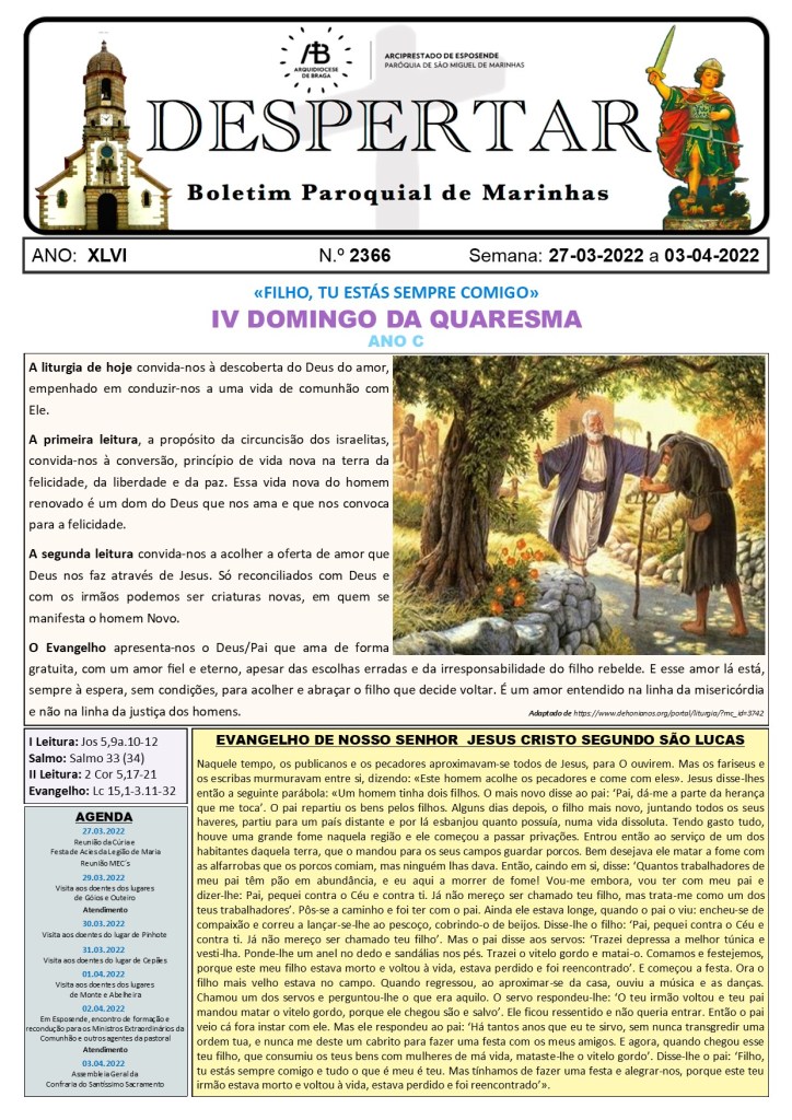 Boletim Despertar n.º 2366 de 27.03.2022 a 03.04.2022