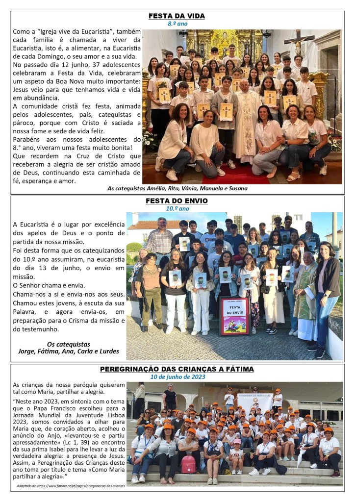 Foi com esta certeza que nos reunimos com alegria na casa do Senhor para participarmos nesta celebração, acompanhando as meninas e os meninos do 3.° ano da catequese, que comungaram pela primeira vez Jesus na Eucaristia.