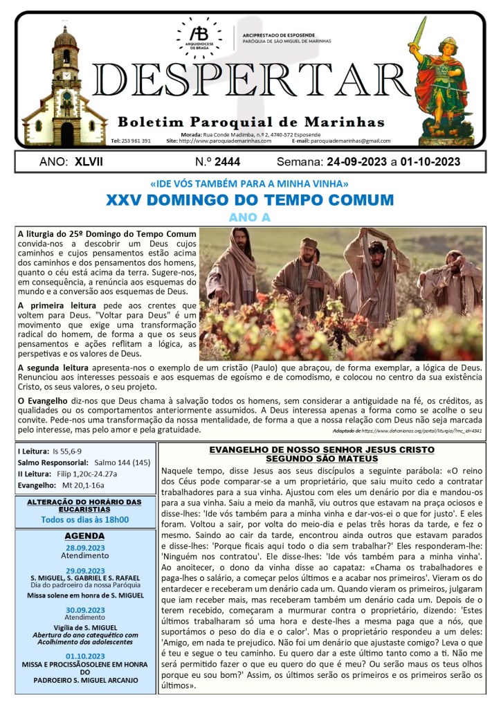 Escrito por: Paróquia de São Miguel de Marinhas (Esposende) | Filed under Boletim Paroquial "DESPERTAR"