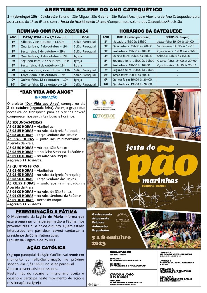 📅 A abertura oficial do ano catequético terá lugar no dia da celebração da Festa do Padroeiro Arcanjo São Miguel.