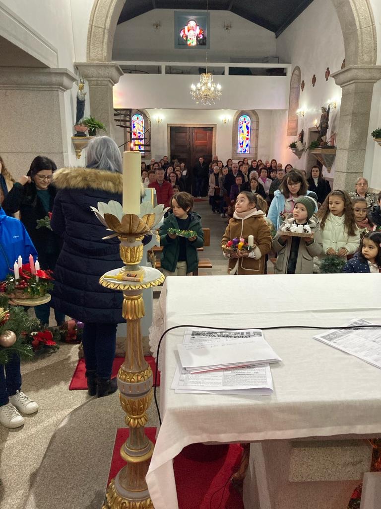 As crianças e adolescentes da nossa catequese trouxeram a coroa do Advento e levaram-na para junto do altar a fim de ser abençoada pelo Senhor Reitor.